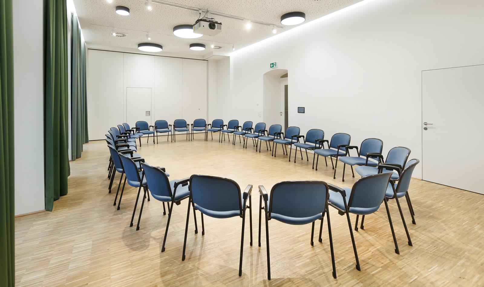 Dieser Raum eignet sich perfekt für Vorträge, Podiumsdiskussionen, Pressekonferenzen, Film-Screenings und Workshops.